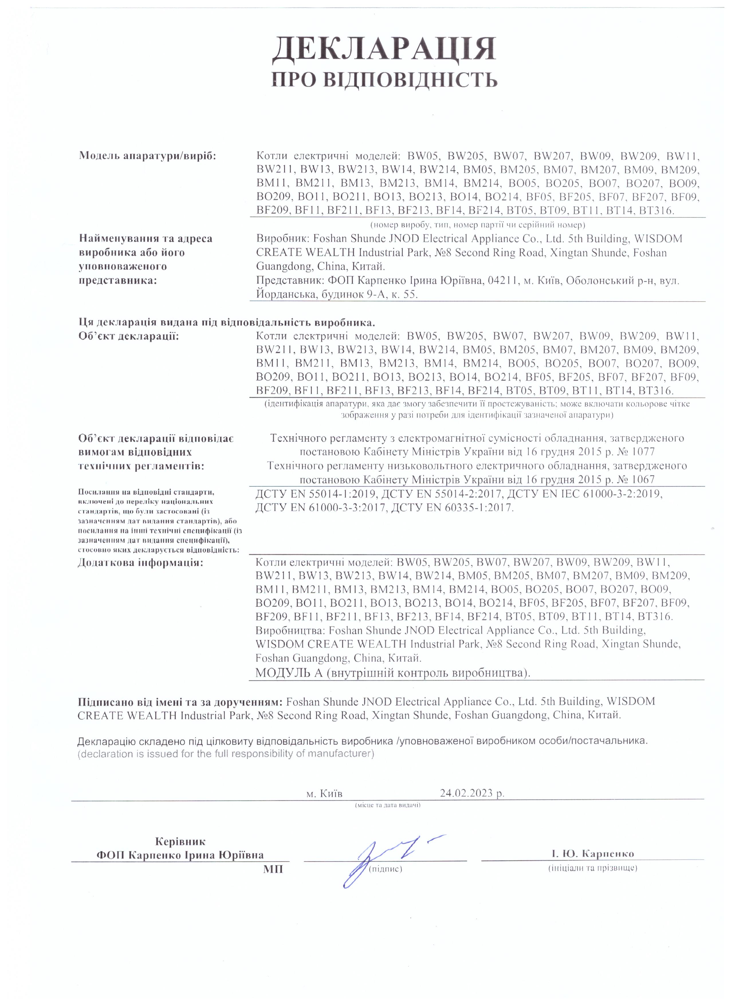 Основні технічні характеристики електрокотла PIRAMIDA24: